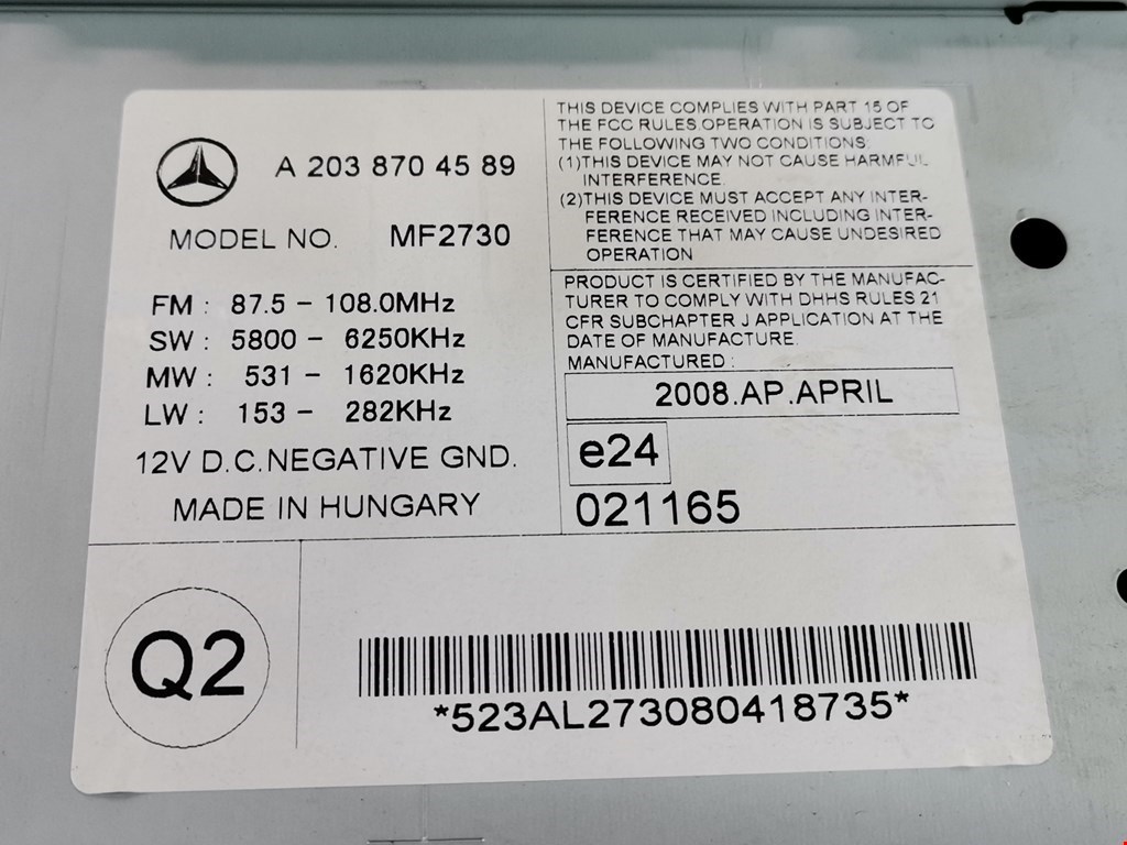 Магнитола MERCEDES-BENZ CLC-Class CL203 2008-2011