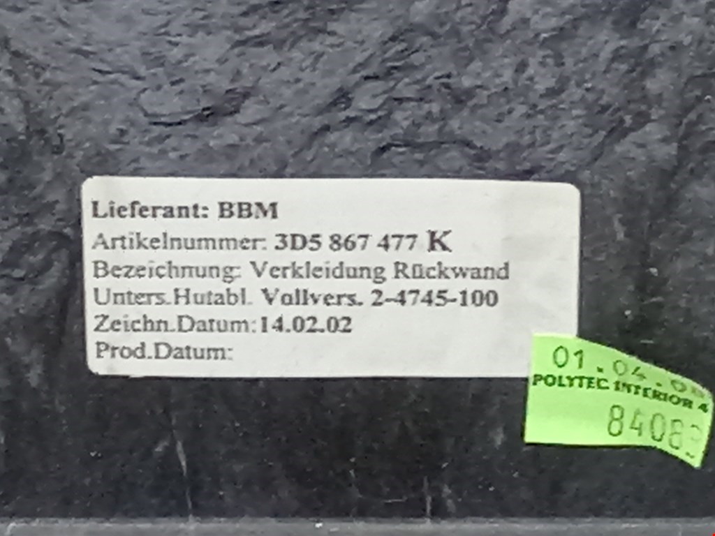 Шторка багажника (полка) VOLKSWAGEN Phaeton 2002-2016