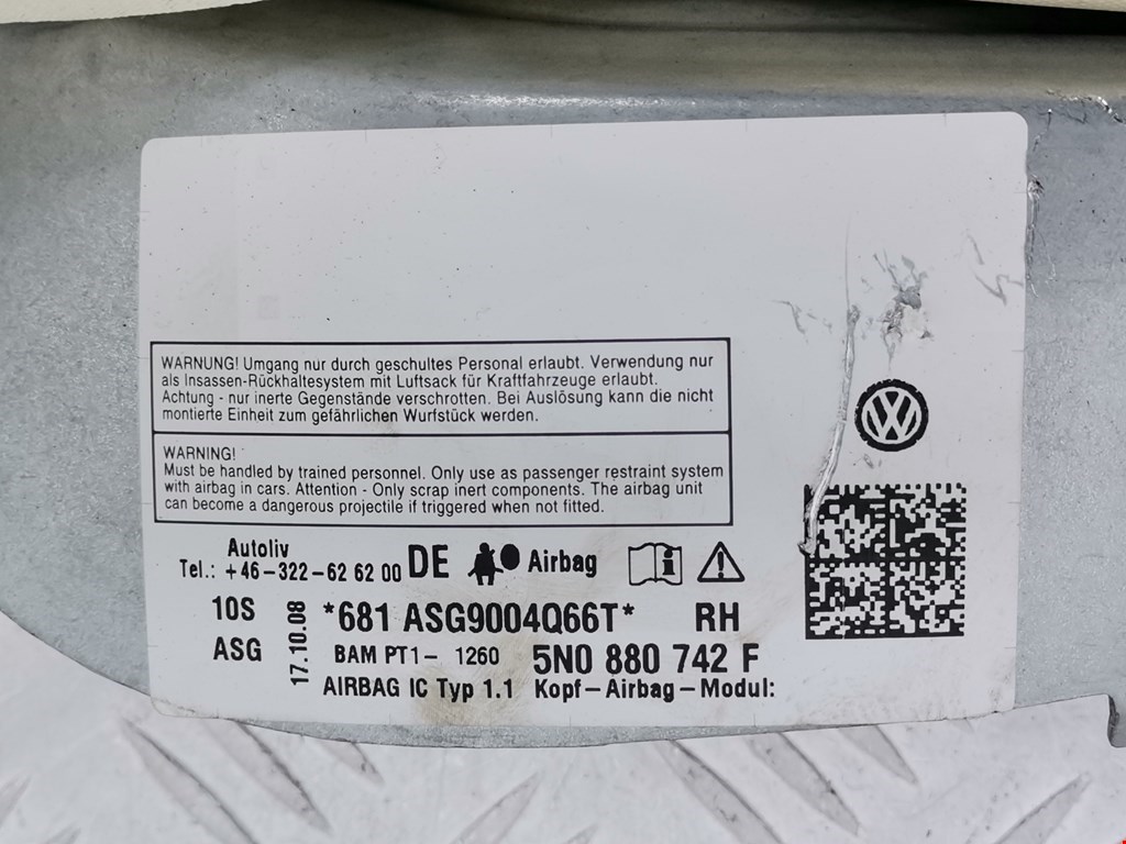 Подушка безопасности боковая (шторка) VOLKSWAGEN Tiguan 2007-2018