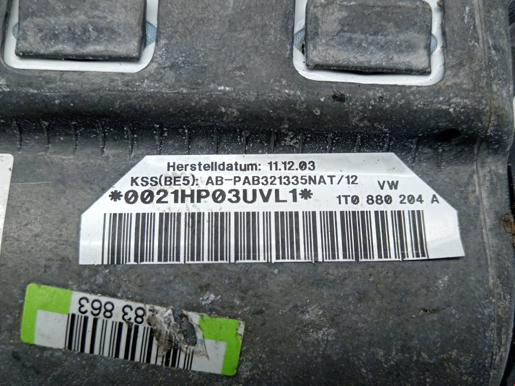 Подушка безопасности пассажирская (в торпедо) для автомобилей VOLKSWAGEN Touran 2003-2010