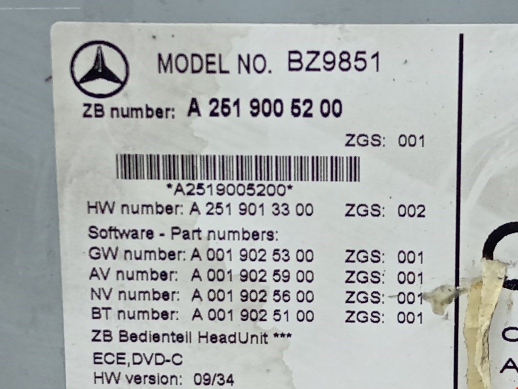 Магнитола MERCEDES-BENZ R-Class W251 2005-2017