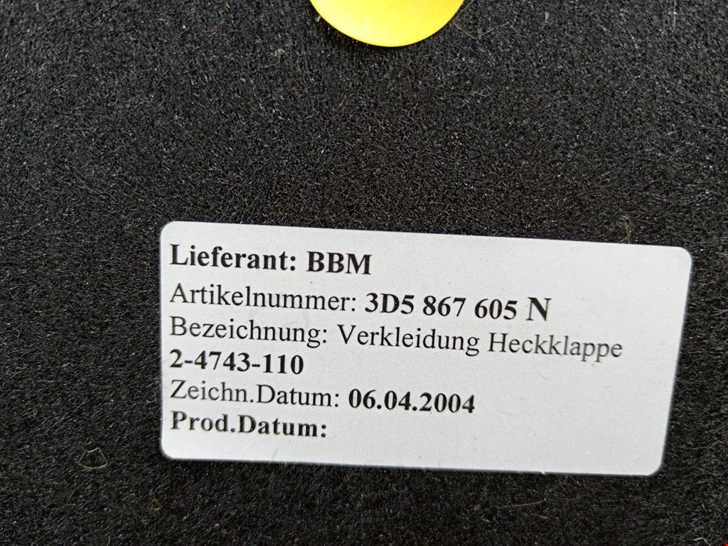 Обшивка крышки багажника VOLKSWAGEN Phaeton 2002-2016
